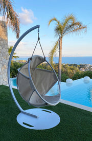 Det unike designet gjør det mulig å plassere hengestolen nesten hvor som helst – i hagen, på terrassen eller inne i hjemmet – og gir deg stor fleksibilitet og komfort.