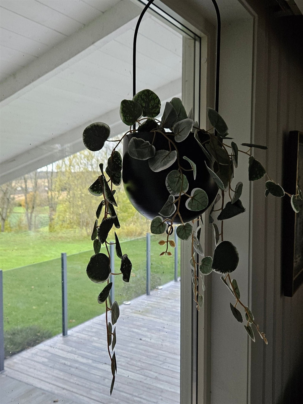 Stilig ampel i sort metall høyde 42cm, diameter 16 cm - klassisk sort farge