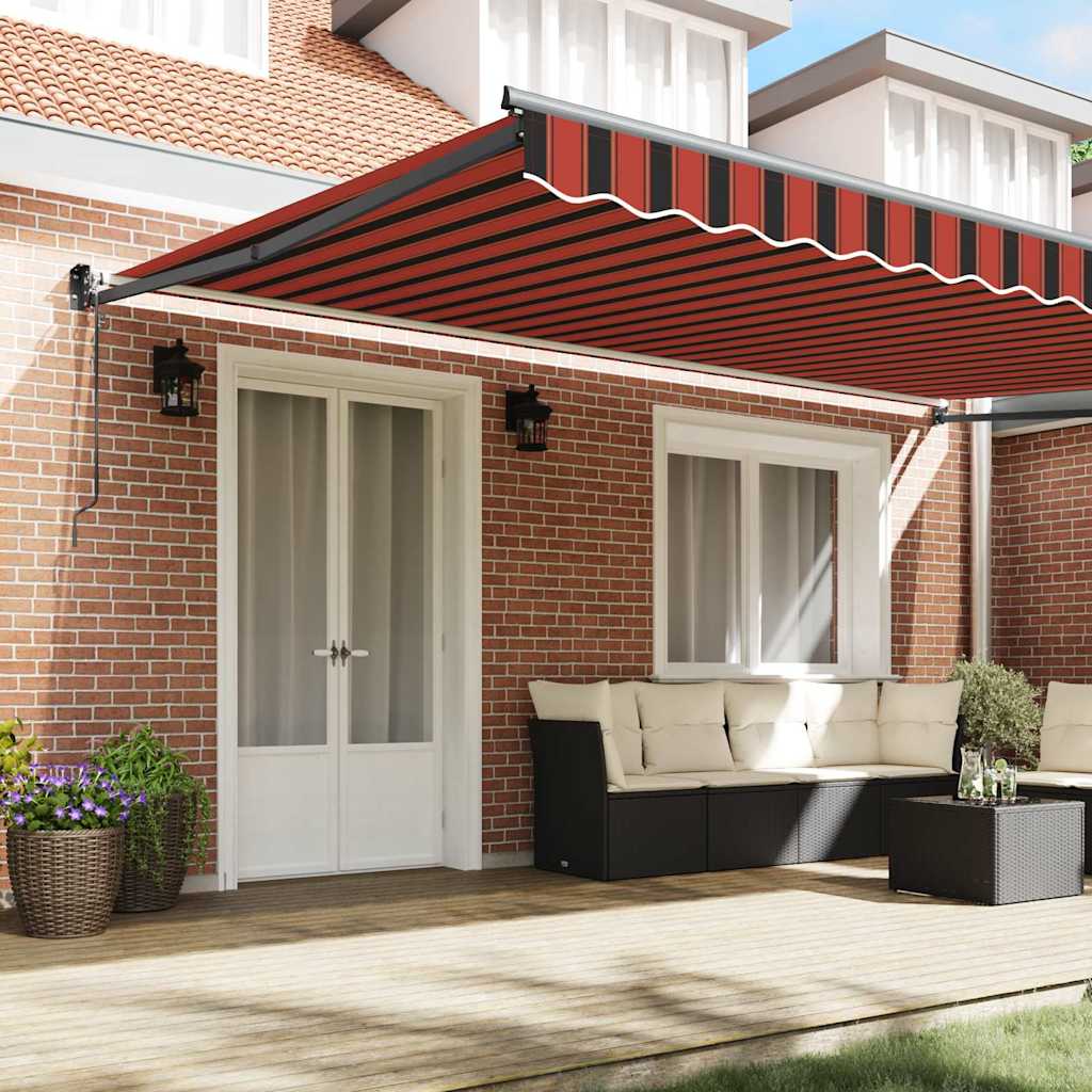 Denne 500x300 cm automatiske uttrekkbare markisen gir deg en smart måte å få skygge på utendørs. Med sine livlige røde og svarte striper ser den flott ut og gir ly fra sterk sol og regn.