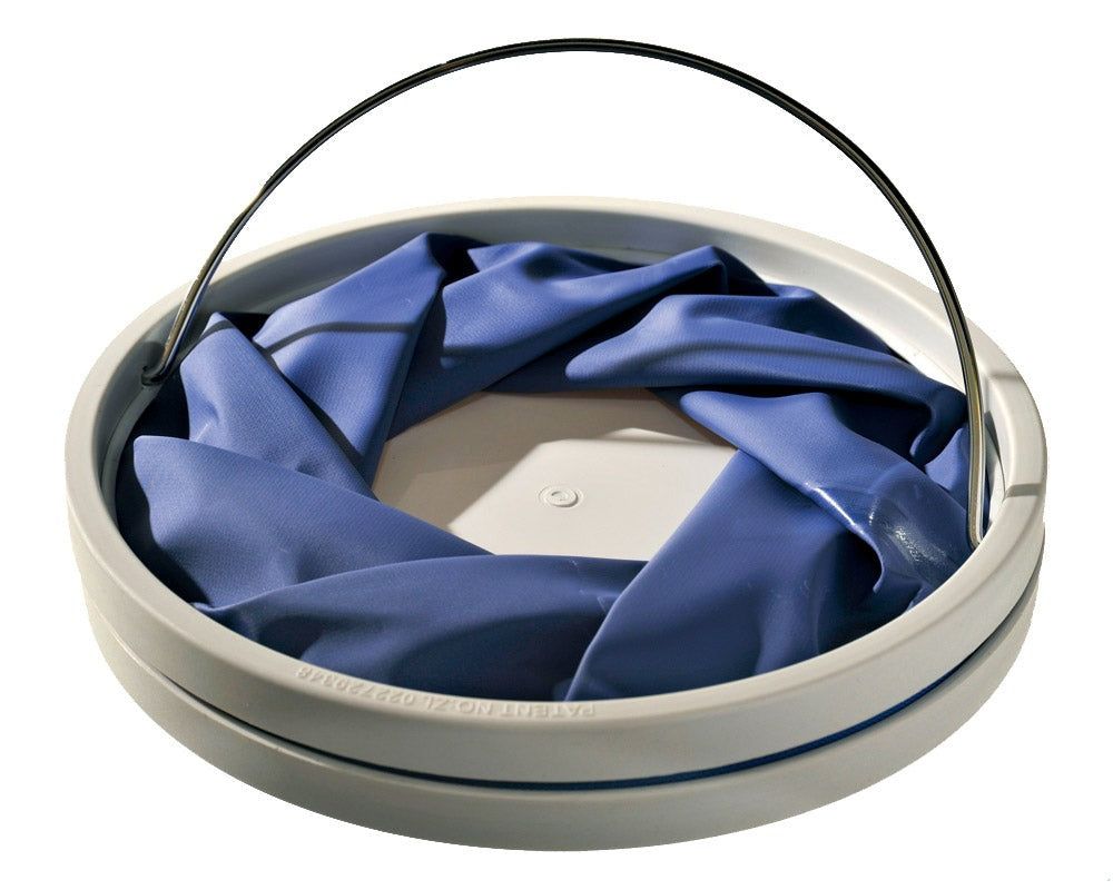 Allsidig bøtte til rengjøring etc. Bøtten er sammenleggbar, men den står alene når den er fylt med vann.