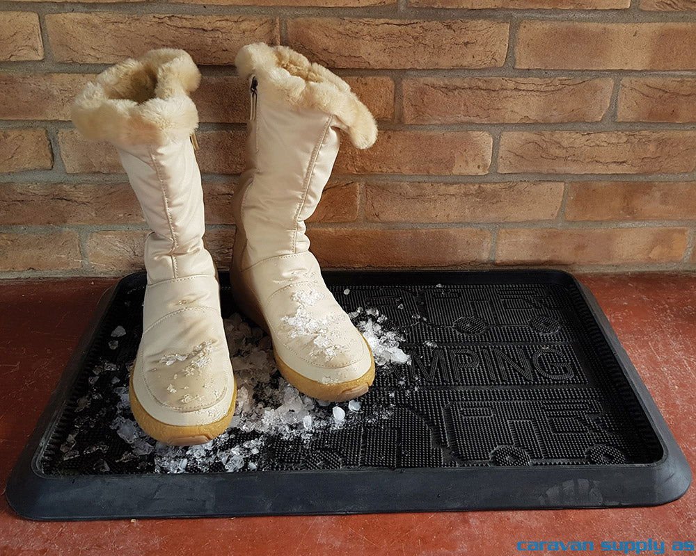 Supersmart dørmatte tray, som samler opp både vått og tørt! Perfekt for bobil og caravanturen, så slipper du å dra snø som smelter, eller smuss inn i bilen. Her renner støvlene trygt og greit ned i dette gummitrayet fra Arisol!