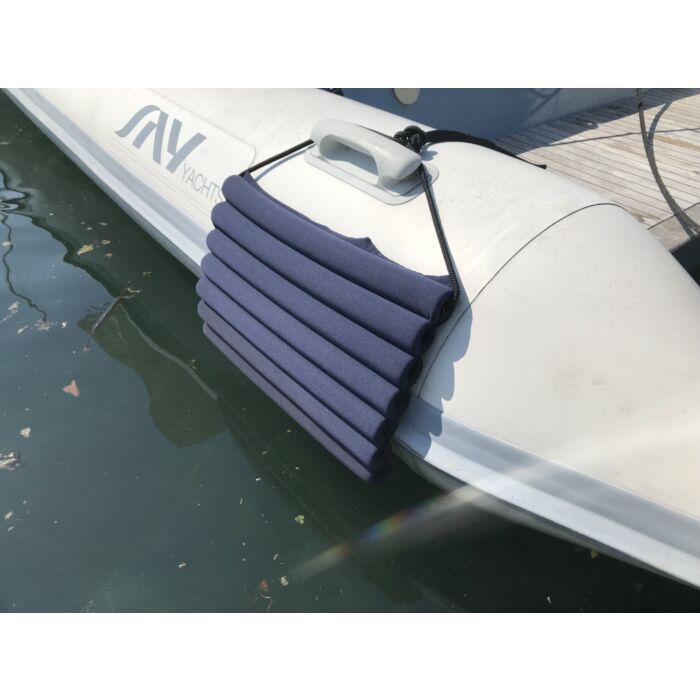 Høykvalitets polyestertrekk, fôret med lukket PE-skum som ikke trekker inn vann. Trekket er meget skånsomt mot skrogsiden, gelcoat og polish, på lik linje med fendertrekk ellers.
