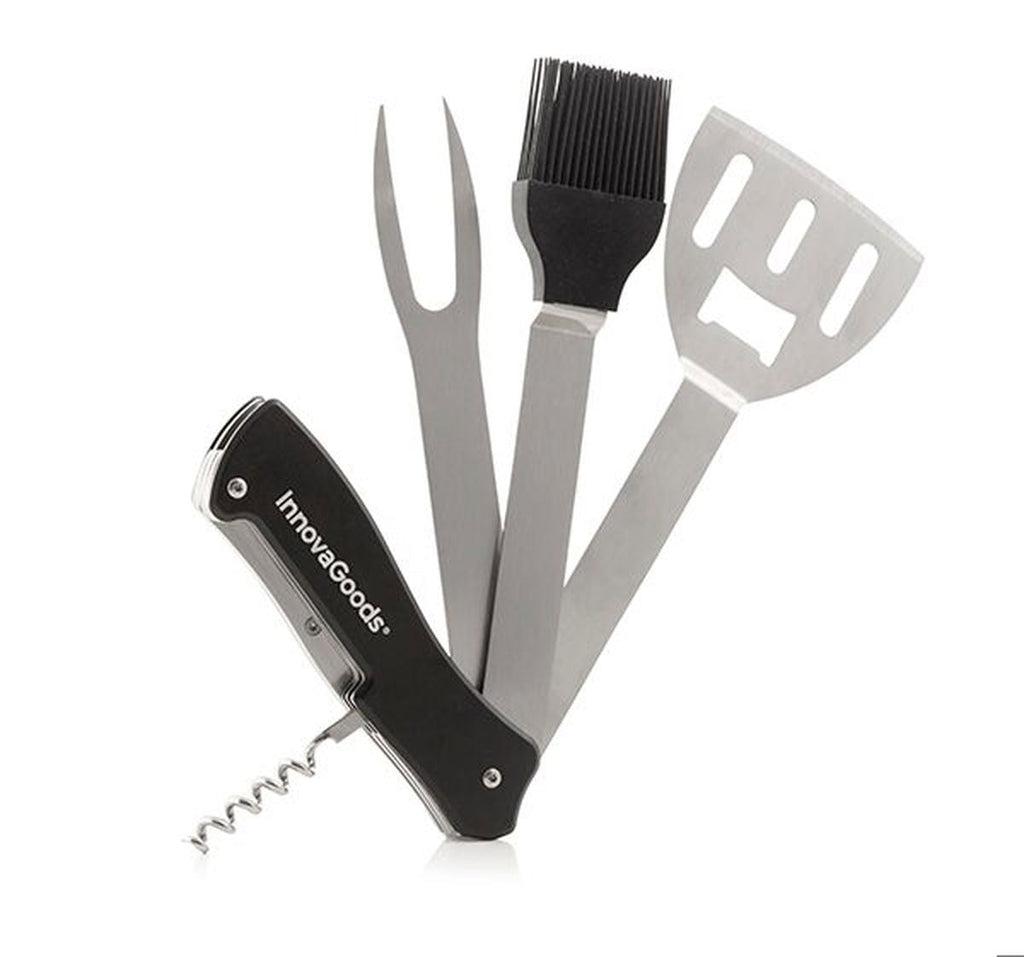 - Inkluderer: stekespade, børste, gaffel, korketrekker og flaskeåpner