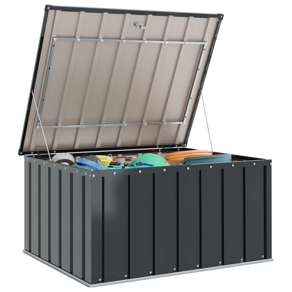 Robust stålkonstruksjon: Laget for å vare, denne lagringsboksen er helt laget av høykvalitets stål. Det sterke materialet sikrer langvarig bruk og tar vare på innholdet mot slitasje. Bygget for utendørsbruk, der været kan være en utfordring. Med stål kan du stole på at boksen er en fast del av hagen din. Sikker dørlås: Denne lagringsboksen har en sterk lås som sørger for sikkerhet, perfekt for å beskytte viktige eiendeler. Den er kjent for opp mot sin styrke og pålitelighet, og trenger en nøkkel for åpning og lukking, og gir ekstra trygghet for lagring av verktøy og møbler ute. Rikelig lagringsplass: Med generøs innvendig plass kan boksen romme alt fra hageredskaper til sesongdekorasjoner. Den gode plassen hjelper deg å holde ting organisert ute, og kutter ned på rot ved å effektivt huse forskjellige eiendeler. Moderne design: Dette produktet har en moderne stil med sin enkle struktur og minimalisme. Designet er både funksjonelt og lekkert, med rene linjer og et elegant preg. Den moderne stilen passer til ulike utemøbler. Vedeholdelsesinstruksjoner: For å holde den fin, tørk ned boksen med en fuktig klut. Denne enkle vedlikeholdsrutinene sørger for at boksen beholder sine funksjoner og sitt utseende over tid, uten tungvint vedlikehold, perfekt for de med mye å gjøre.- Farge: Svart
