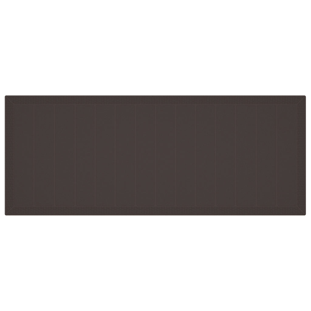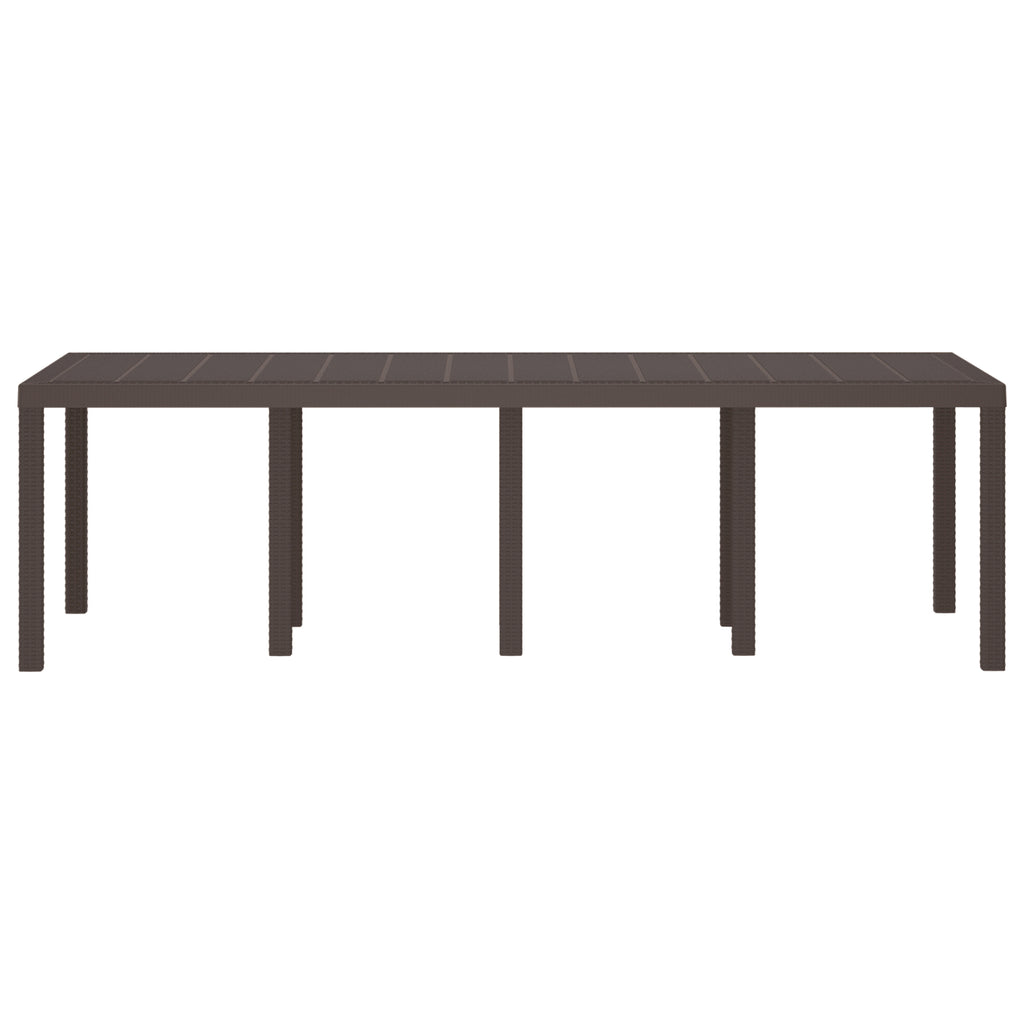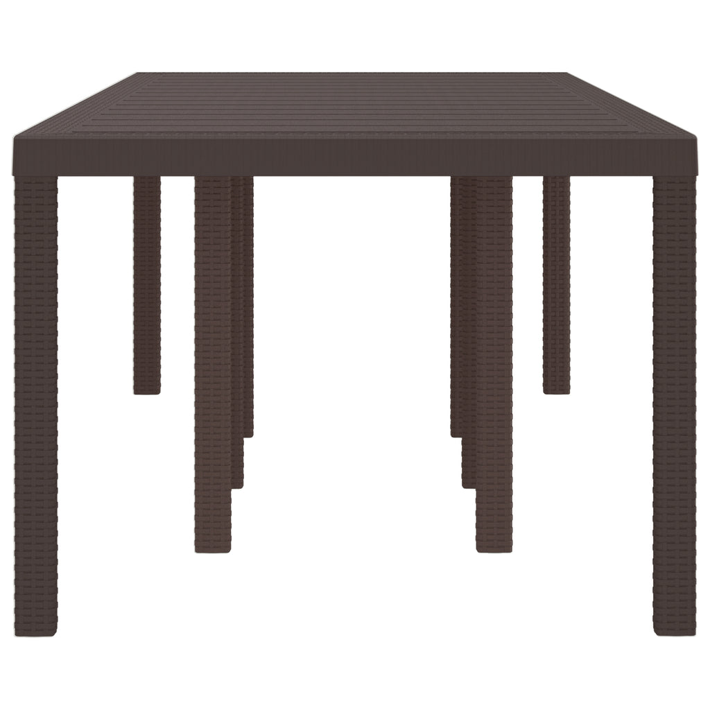 Dette utendørs spisebordet, laget av høy kvalitet syntetisk plast, har en flott brun finish som er et supert tillegg til enhver terrasse eller balkong. Perfekt for familiemiddager eller sammenkomster, kombinerer det stil og praktisk tilpasning for alle utendørs settinger.