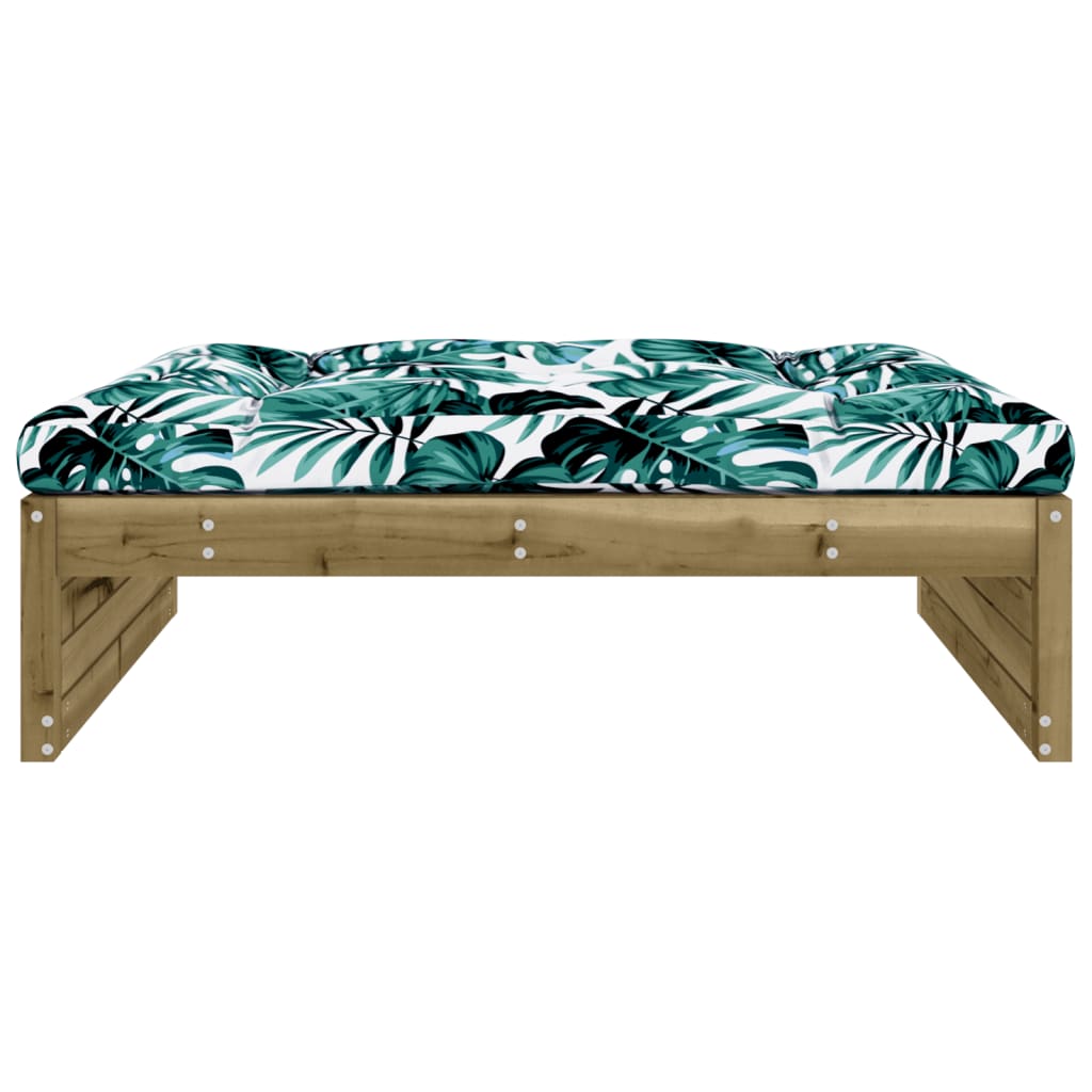 Denne hagefotskammelen i tre, som skiller seg ut med sitt lamelldesign og myk pute, vil være et flott tillegg til hagen, terrassen eller uteplassen for å nyte en koselig tid med familie eller venner.