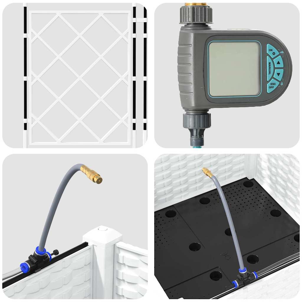 - Innebygd Vanningssystem: Utstyrt med et avansert vanningssystem tar denne hageplanteren bort gjetningen fra vanning. Ved å bruke innebygde kanaler distribuerer den effektivt vann direkte til plantens røtter, og sikrer at de får tilstrekkelig fuktighet samtidig som det reduserer vannavfall og støtter sunnere vekst.