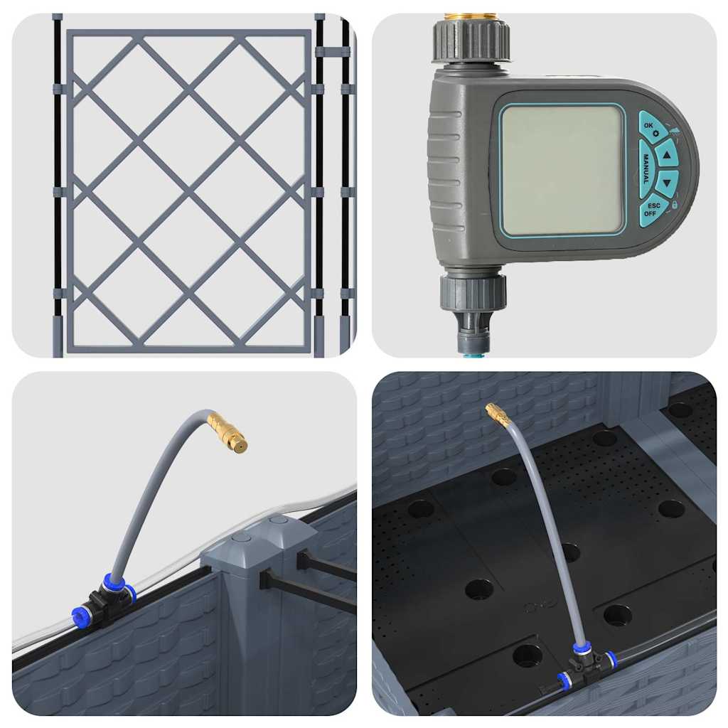 - Innebygd Vanningssystem: Utstyrt med et avansert vanningssystem tar denne hageplanteren bort gjetningen fra vanning. Ved å bruke innebygde kanaler distribuerer den effektivt vann direkte til plantens røtter, og sikrer at de får tilstrekkelig fuktighet samtidig som det reduserer vannavfall og støtter sunnere vekst.