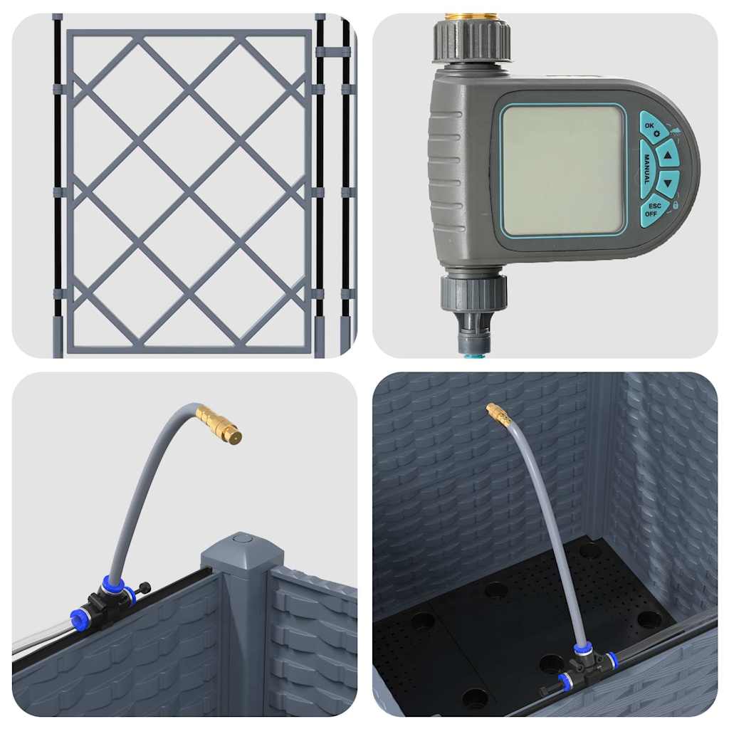 - Innebygd Vanningssystem: Utstyrt med et avansert vanningssystem tar denne hageplanteren bort gjetningen fra vanning. Ved å bruke innebygde kanaler distribuerer den effektivt vann direkte til plantens røtter, og sikrer at de får tilstrekkelig fuktighet samtidig som det reduserer vannavfall og støtter sunnere vekst.