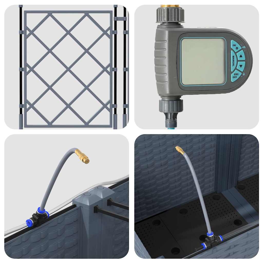 - Innebygd Vanningssystem: Utstyrt med et avansert vanningssystem tar denne hageplanteren bort gjetningen fra vanning. Ved å bruke innebygde kanaler distribuerer den effektivt vann direkte til plantens røtter, og sikrer at de får tilstrekkelig fuktighet samtidig som det reduserer vannavfall og støtter sunnere vekst.