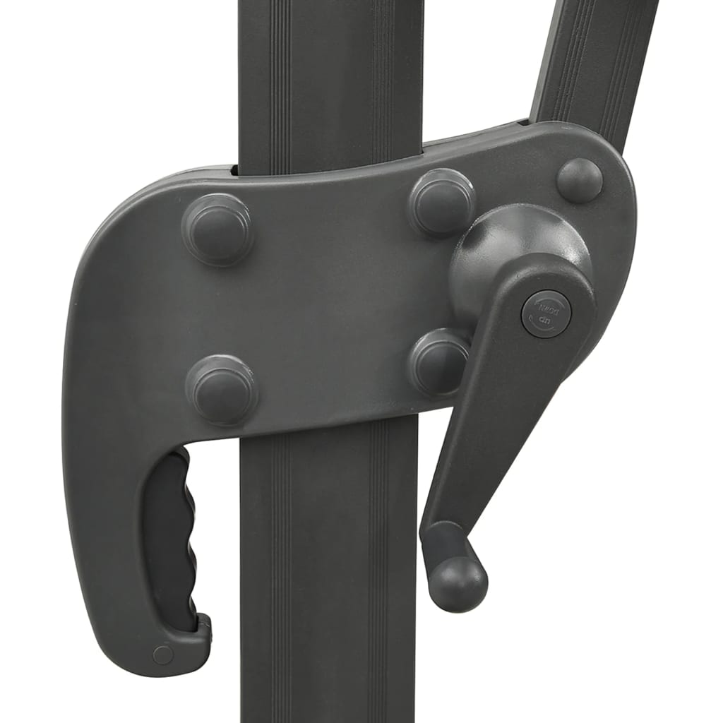 Parasolskjermen, laget av UV-beskyttende og anti-falmende polyester, gir deg optimal beskyttelse mot solen, og er lett å rengjøre. Den har en solid kryssbase for ekstra stabilitet. Hageparasollens eksklusive design lar deg vippe og rotere den 360 grader for å blokkere solen fra alle vinkler. Den sterke aluminiumsstangen, sammen med de 8 spilene, gjør parasollen veldig stabil og holdbar. Denne hageparaplyen kan enkelt åpnes og lukkes takket være sveivemekanismen. Denne terrasseparasollen har 24 lysdioder for å belyse uterommet og skape en koselig og romantisk atmosfære når solen går ned.