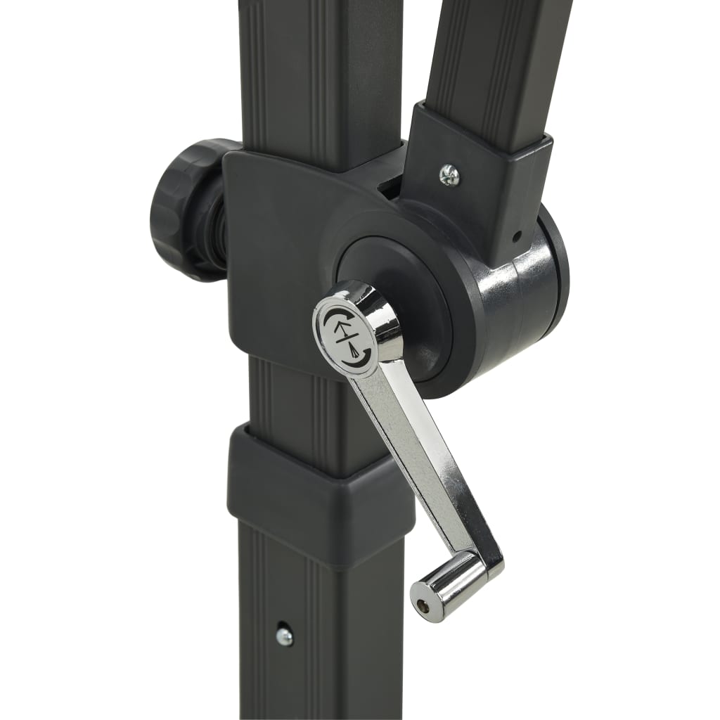 Parasollskjermen er laget av UV-beskyttende og anti-falmende polyester. Den er lett å rengjøre, og gir deg optimal beskyttelse mot solen. Den har en solid kryssbase for å øke stabiliteten. Den eksklusive utformingen av denne parasollen gir deg muligheten til å vippe parasollen for å skygge for solen når den går ned mot horisonten. Den sterke aluminiumsstangen, sammen med de 8 spilene, gjør parasollen veldig stabil og holdbar. Denne hageparaplyen kan enkelt åpnes og lukkes takket være sveivemekanismen. Den er også designet med dobbel topp, som gir bedre ventilasjon.