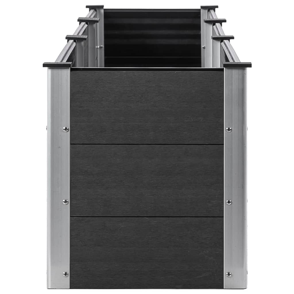 Plantekassen er laget av tre-plastkompositt (WPC), noe som gjør den holdbar, værbestandig og egnet for utendørs bruk. Den har plass til et betydelig antall grønne planter og blomster.