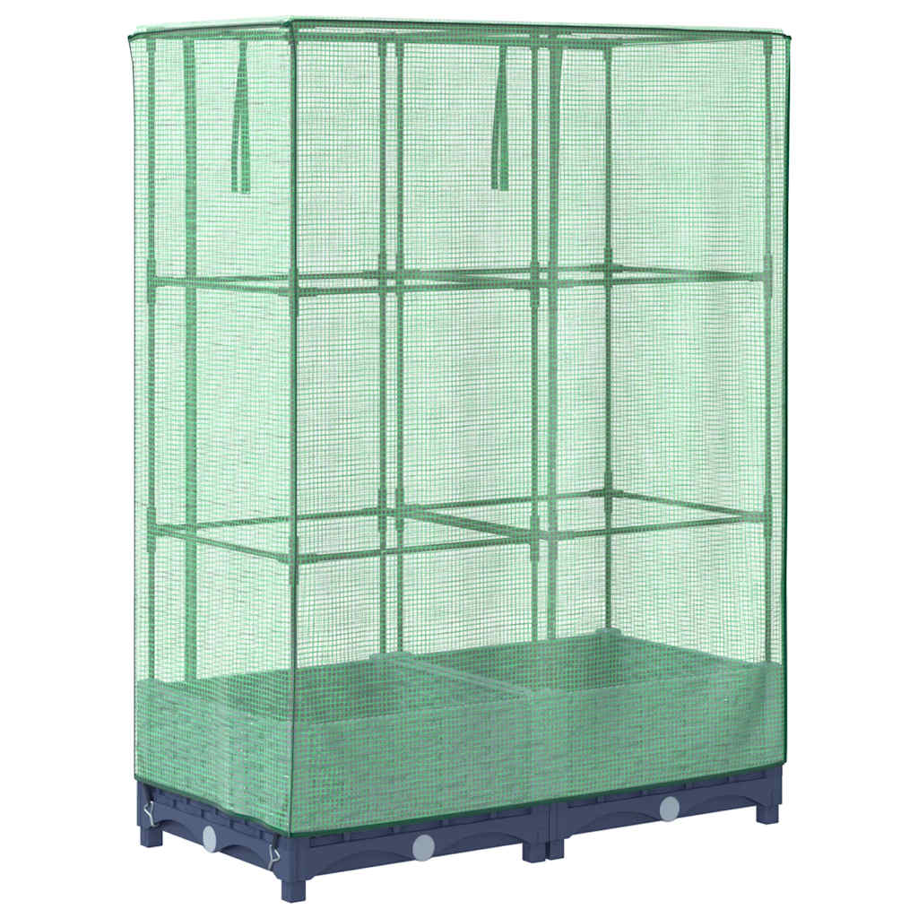 - Solid konstruksjon: Høybedet er laget av polypropylen og har en solid jernrørramme på toppen, slik at planter kan vokse og klatre gjennom den.