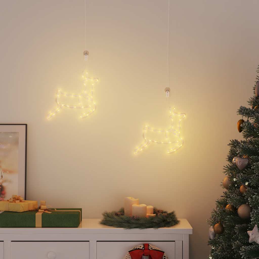 - Enkel å henge: De juleopplyste reinsdyrene kommer med praktiske sugekopper og kroker, slik at du enkelt kan henge dem.