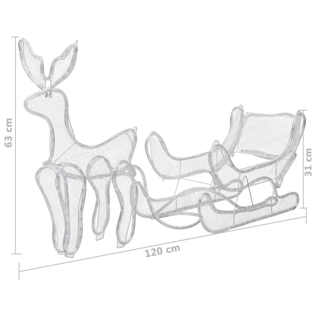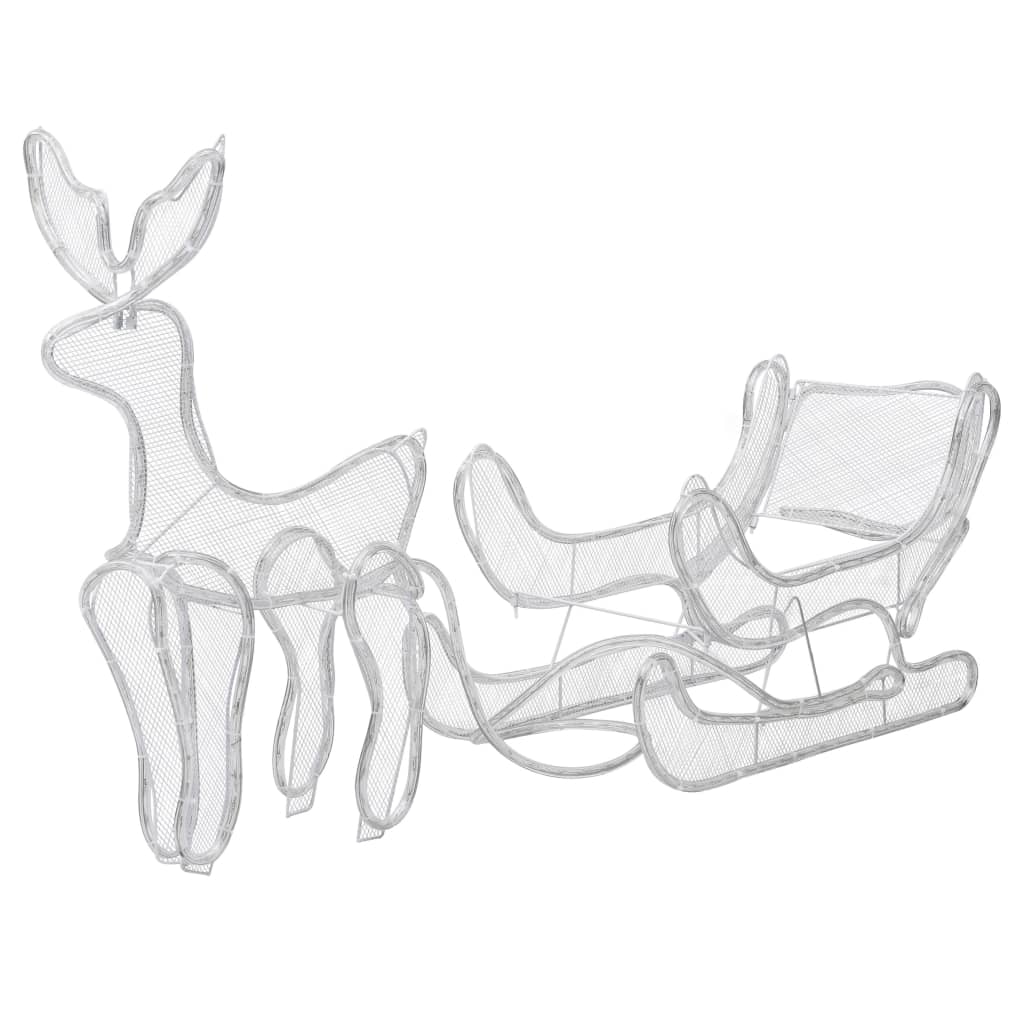 Vår iøynefallende belyste julelysdekorasjon i form av reinsdyr og slede, inkludert lysdioder og netting, er en perfekt dekorasjon.