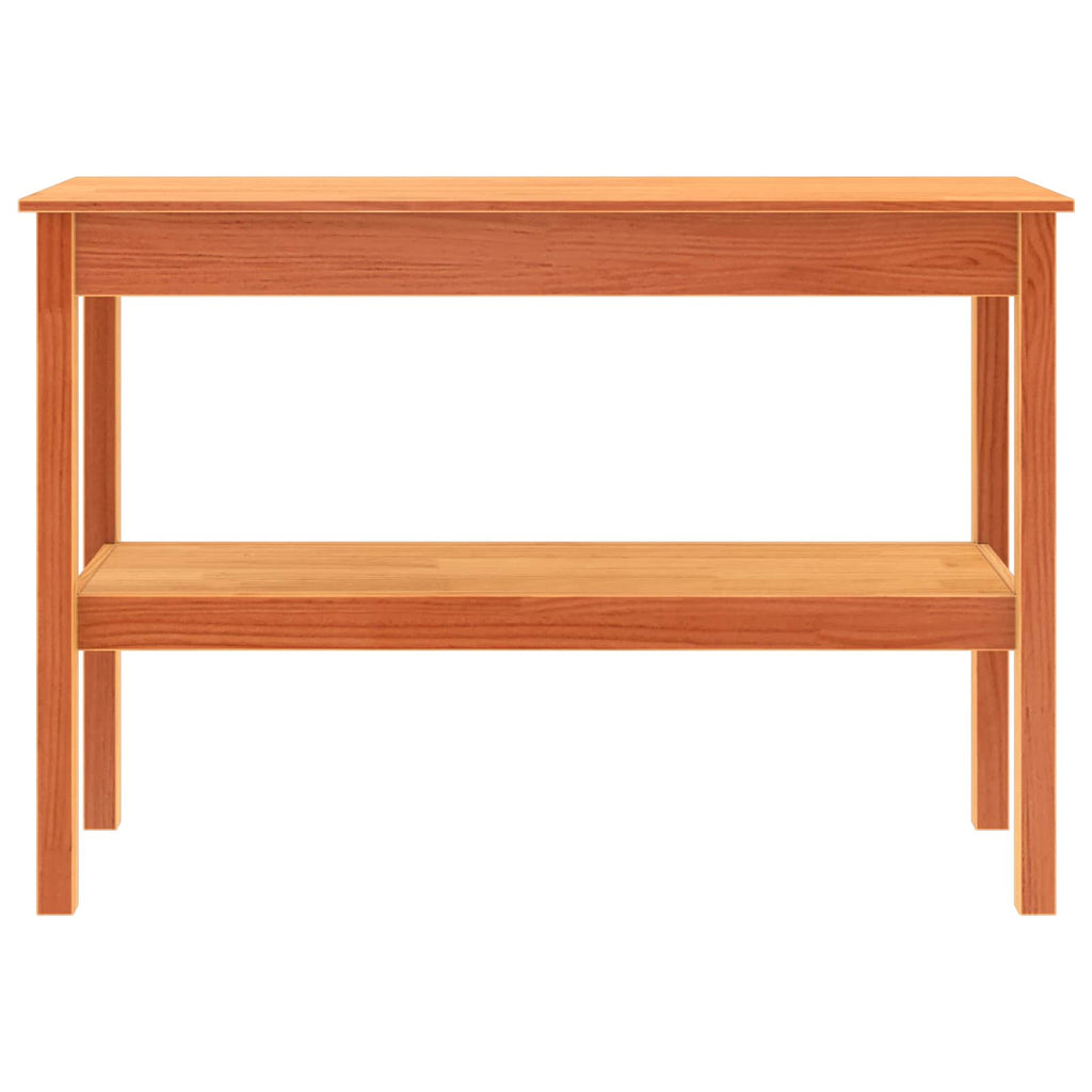Dette konsollbordet med lagring kombinerer moderne stil og funksjonalitet, og tilbyr et stilrent aksentstykke til hjemmet ditt. Dets rektangulære form og konstruksjon av solid furu gir en holdbar touch til entreer eller stuer. Plankehyllene tilbyr god lagringsplass for å vise frem dekor eller organisere nødvendigheter, noe som gjør det til et allsidig tillegg.