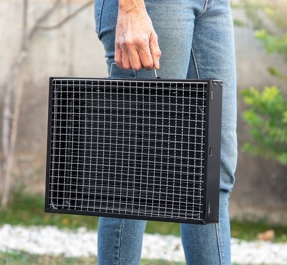 Forsøk denne kullgrillen, som kan benyttes for eksempel på bordet. Grillen kommer med et moderne, sammenleggbart, bærbar design som er veldig praktisk og håndterlig å ta med hvor som helst. Den har ventilasjonshull og et bærehåndtak for å gjøre det enkelt å transportere. Matgrillen er avtagbar og gjør det mulig å enkelt tilsette trekull, når som helst. Grillen inkluderer også et lavere beskyttelsesgitter som er plassert inne, på bunnen av grillen, på toppen av der kullet er plassert (1,5 kg maks.). Denne jerngrillen er robust, tar liten plass, og er lett både å montere og demontere, du bretter bare ut bena og legger dem på bakken eller på et bord (på en flat, stabil og varmebestandig overflate). Ideell for å nyte et utsøkt grillmåltid med venner, enkel å bruke og rengjøre.