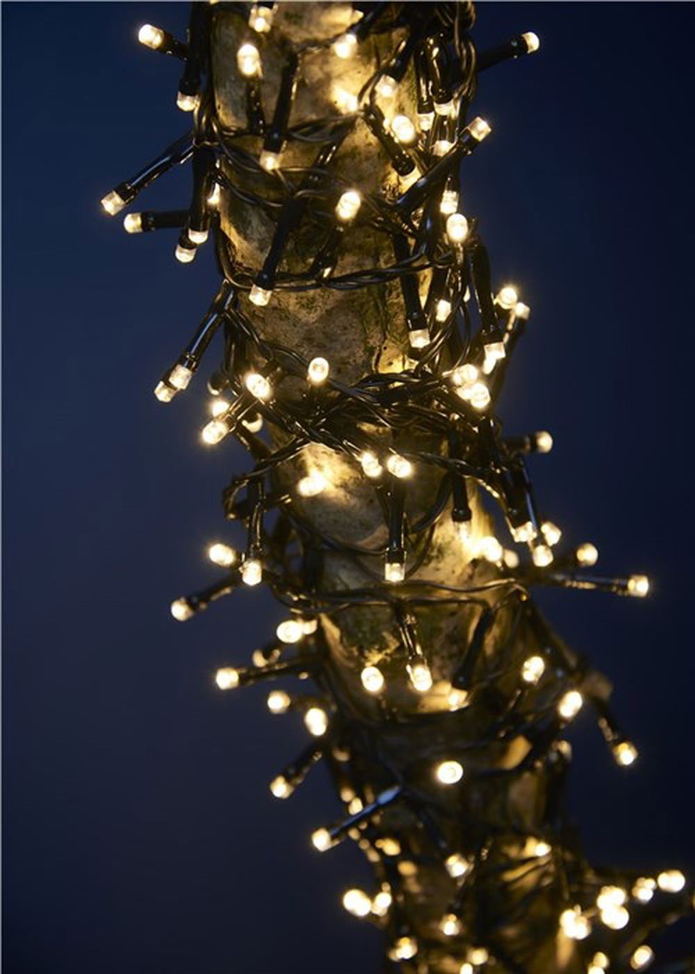 Lysklynge 800LED 230V Day Lengde fra stikk til første LED: 10m. Avstand mellom LED: 2,5cm. Total lengde på kjeden: 29.975m. Med dobbelt timer funksjon: 8 timer på / 6 timer av. 2 timer på / 8 timer av. Led brennetid 30.000 timer.