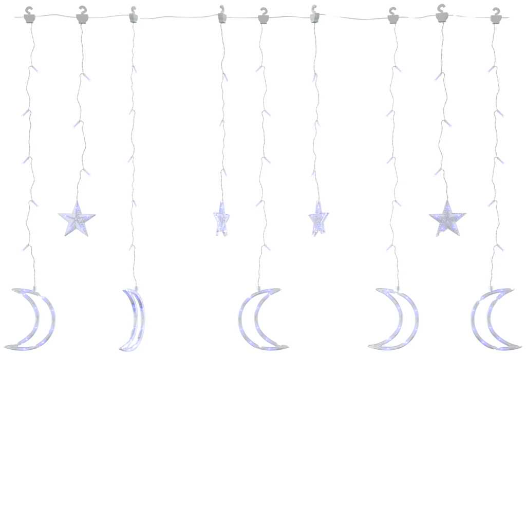 Lysslyngen med stjerne- og måneformede lys er perfekt for bruk som belysningstillegg til ethvert dekorativt prosjekt. Den passer til jul, fester, bryllup og andre høytider.