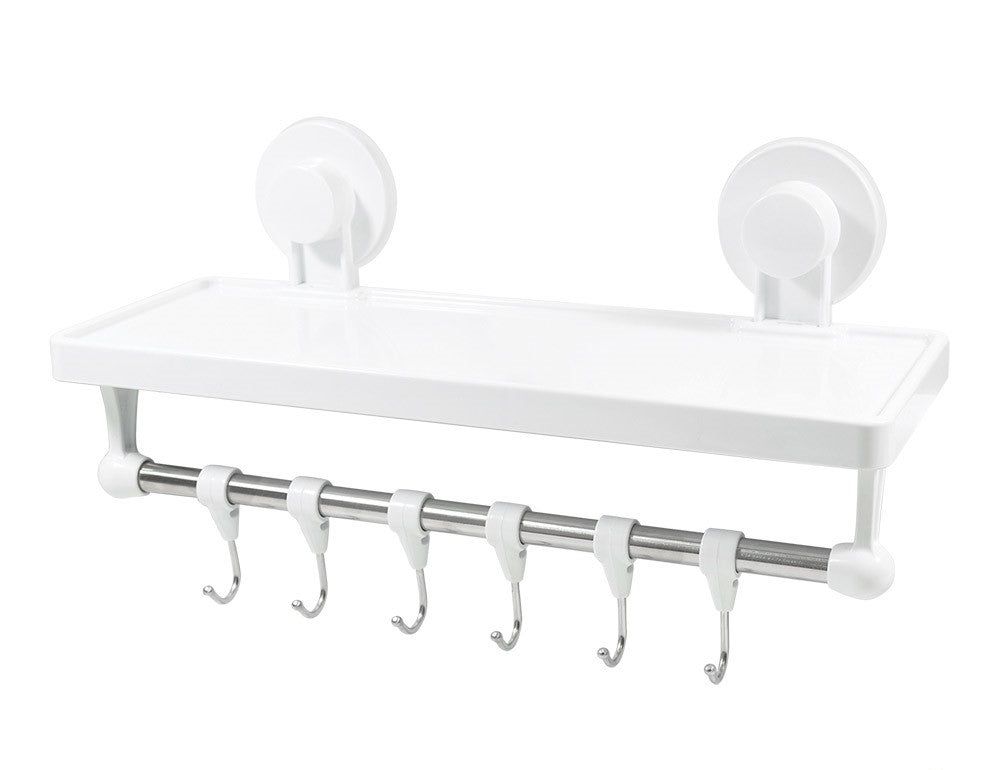 Denne oppbevaringshyllen med sugekopp og 6 kroker fra Haba er laget i ABS plast og rustfritt stål.