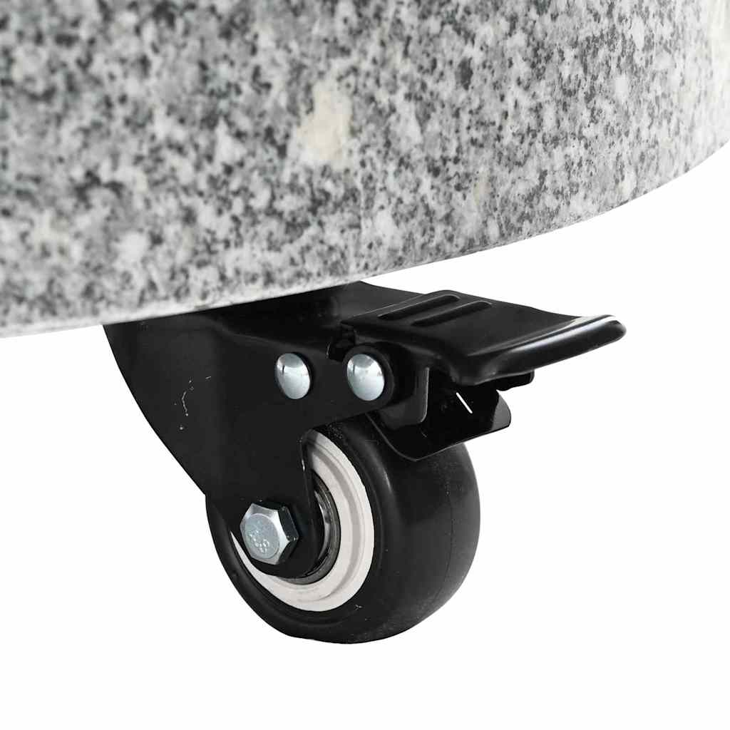 - Flott granittfinish: Denne parasollbasen tilfører eleganse til hagen din med sin runde, polerte granitt. Den gir stabil støtte for parasollen din, så du kan være trygg på at den holder seg på plass i all slags vær. Den klassiske finishen er perfekt for dem som liker minimalistisk stil.