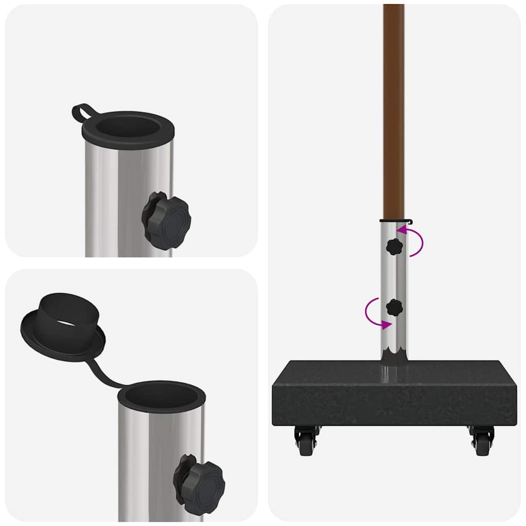 - Inkluderte komponenter: Den har låsbare hjul som gør det superenkelt å flytte parasollbasen, slik at du kan justere plasseringen etter solens posisjon. Hjulene ruller lett over forskjellige overflater, så den fungerer godt på de fleste utendørsområder.
