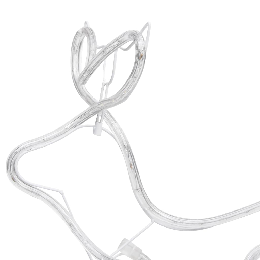 Reinsdyret og sleden lyses av varme hvite LED-lys for en myk glød, noe som gjør dem til et perfekt utrykk både innendørs og utendørs. LED-tauet har 36 lyspærer per meter og totalt 252 lysdioder, med ultralette og energibesparende funksjoner.