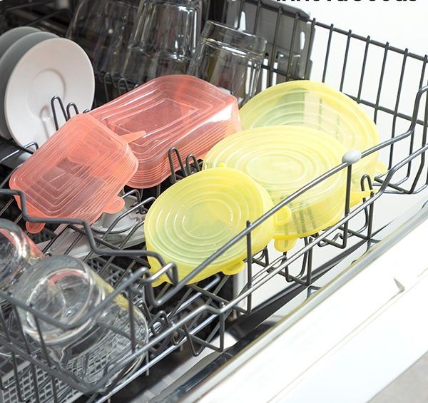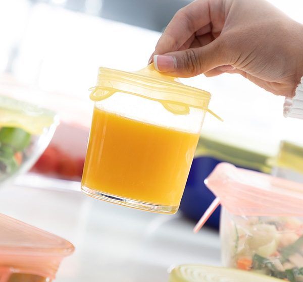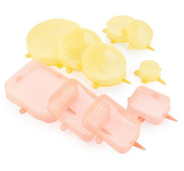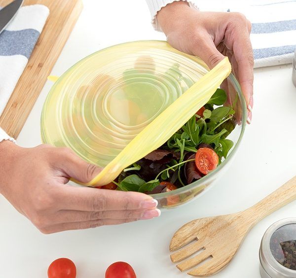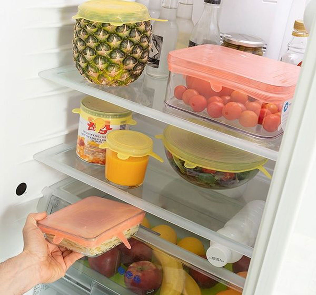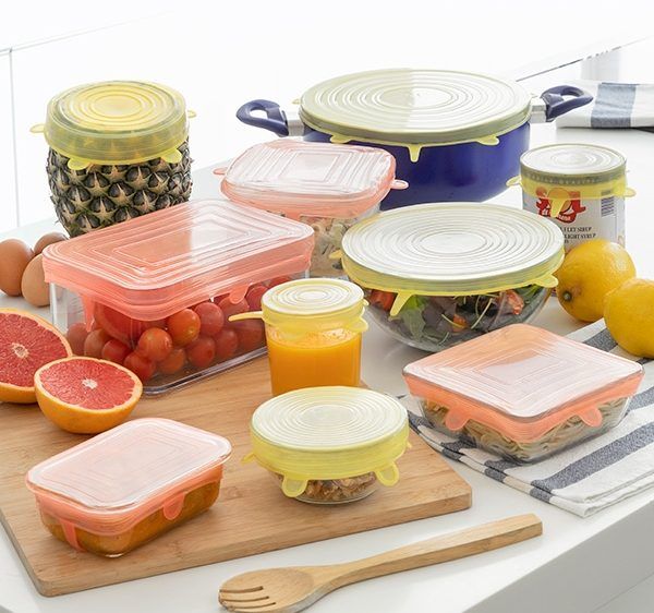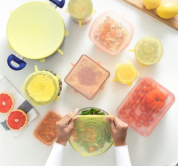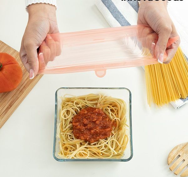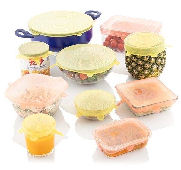 Holder maten ferskere lenger. Elastiske og fleksible lokk i ulike fasonger og størrelser (6 runde og 4 rektangulære) som passer lett på mange bokser, inkludert krukker, boller, glass, panner, metallbokser, tallerkener, fat osv.