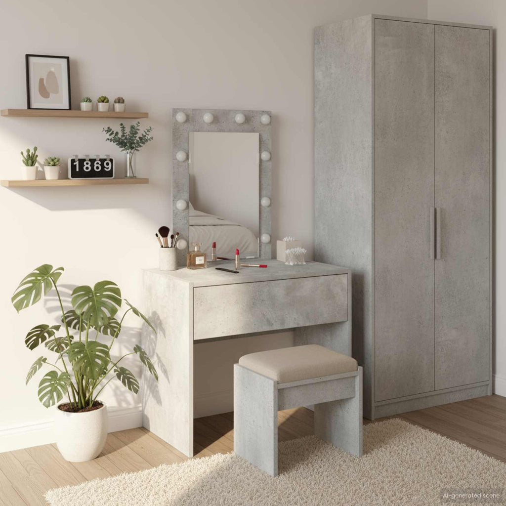 Dette moderne sminkebordet har en kjempefin blanding av stil og praktisk bruk. Det har et minimalistisk design som passer til alle soverom, og laget av konstruert tre gir det et polert preg. Hvis du ønsker en kombinasjon av klasse og funksjonalitet, er dette bordet perfekt for deg.