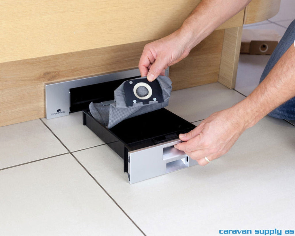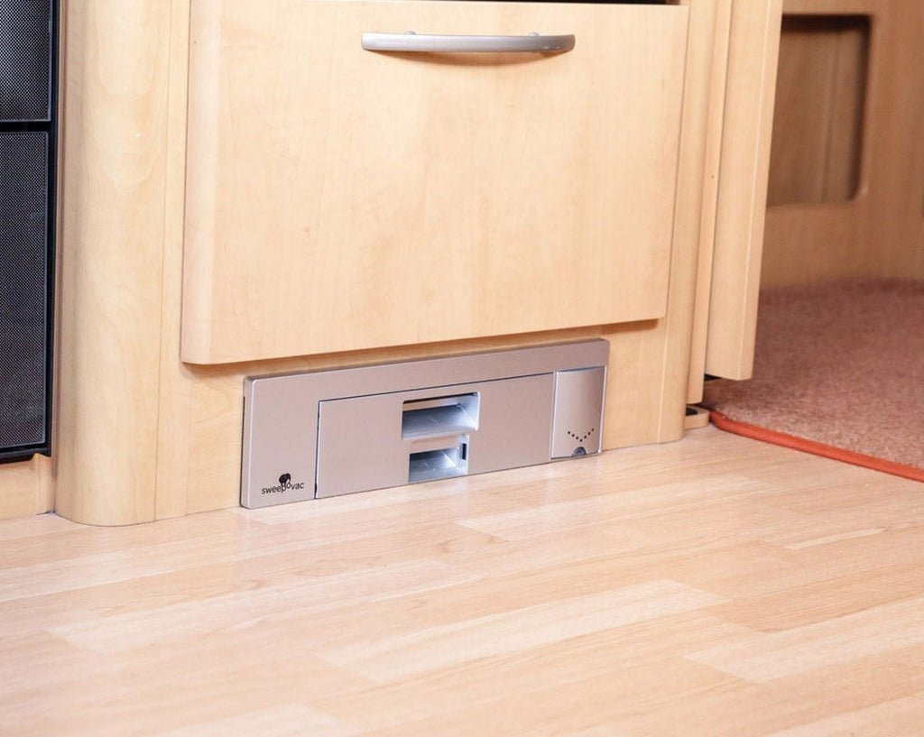Kraftig støvsuger for montering i sokkel på kjøkkenet, bobilen, campingvognen, hytta etc. Sokkelstøvsugeren sparer deg for plass, og gjør det enkelt å rengjøre gulv, kjøkkenbenken, møbler etc. Perfekt hvis du har dyr eller barn som løper ut og inn..