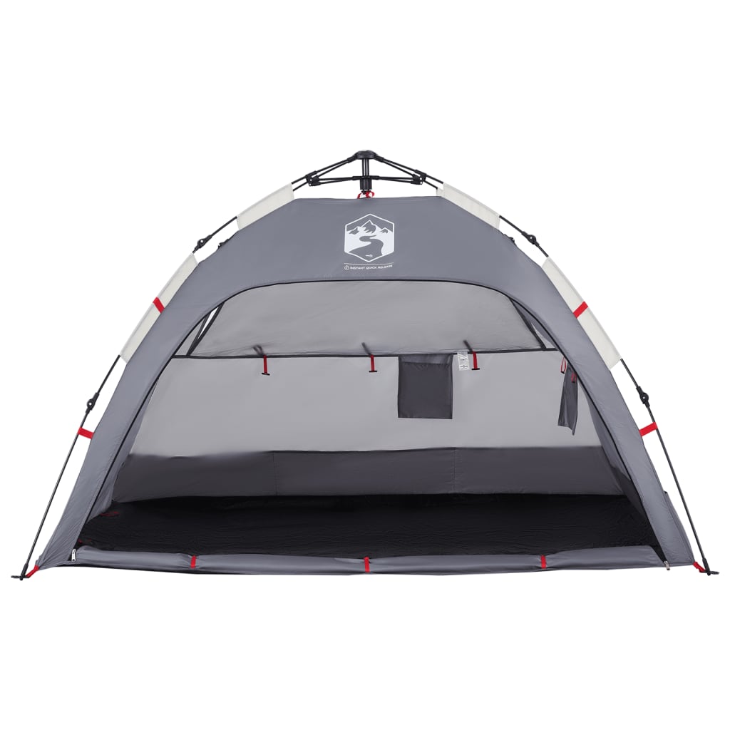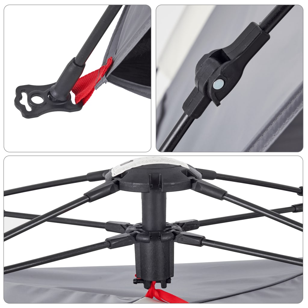 - Hurtigløsningssystem: Sett opp teltet uten problemer med hurtigutløsersystemet! Legg teltet ned, forleng de ferdigmonterte stengene til de låser seg på plass, så er du klar!