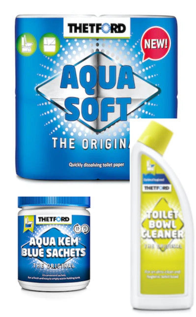 Kjøp med deg det mest nødvendige av Thetdord sanitærprodukter i en pakke, vi gir pakkerabatt og du sparer penger.Her får du både Blue Satchet sanitærmiddel, - markedets mest solgte sanitærmiddel for bobil, caravan og båt