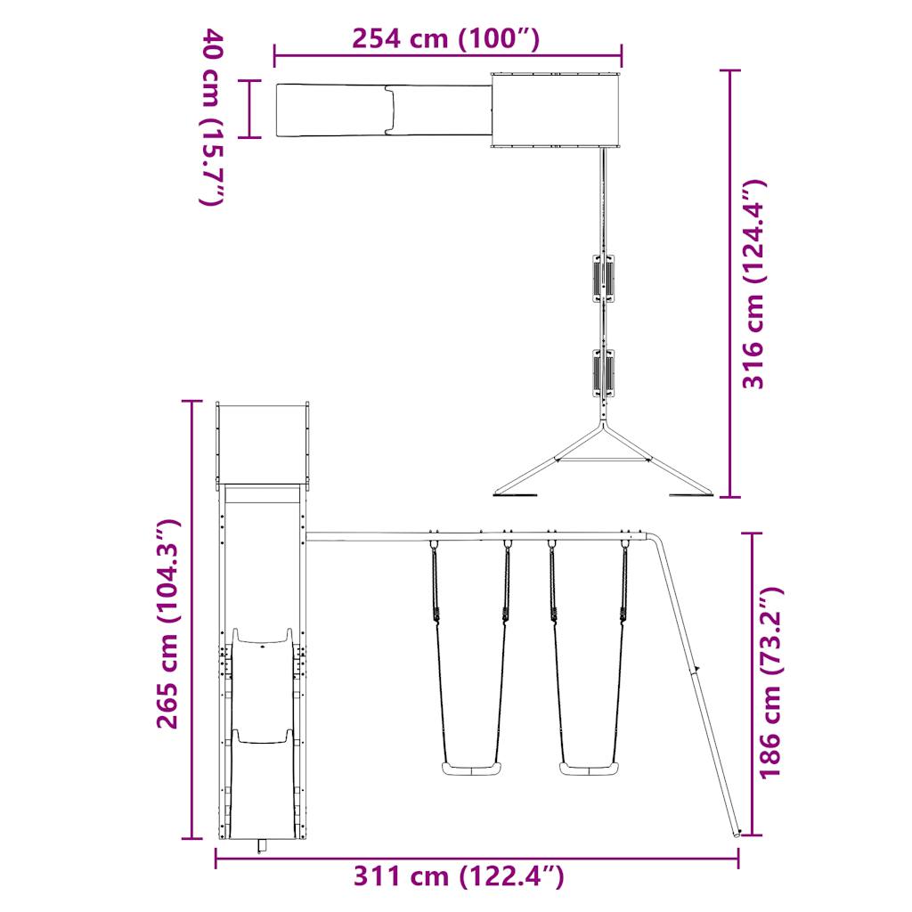 - Multiaktivitetssentre: Klatrestativet har en 118 cm høy plattform og utmerker seg med sin bølgesklie, en dobbel huske samt en sandkasse. Dine små kan også invitere vennene sine til å bli med på moroa.