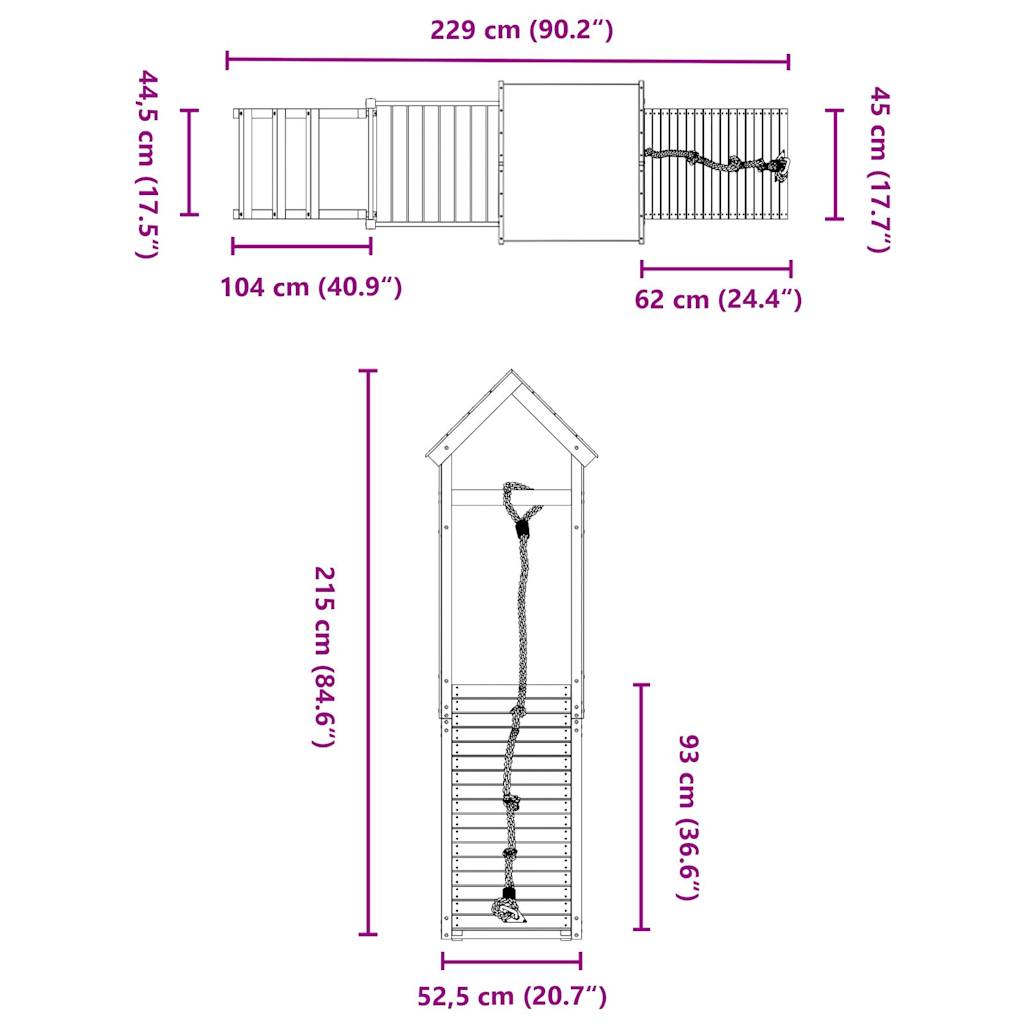 - Slitesterkt materiale: Dette klatrestativet er laget av vakuumtrykkimpregnert furu. Heltre furu er kjent for sin styrke og holdbarhet. Dens rette korn og karakteristiske knuter bidrar til dens rustikke sjarm. Den har blitt impregnert med en konserveringsløsning og gjennomgått autoklavbehandling, noe som forbedrer motstanden mot forråtnelse og forvitring.