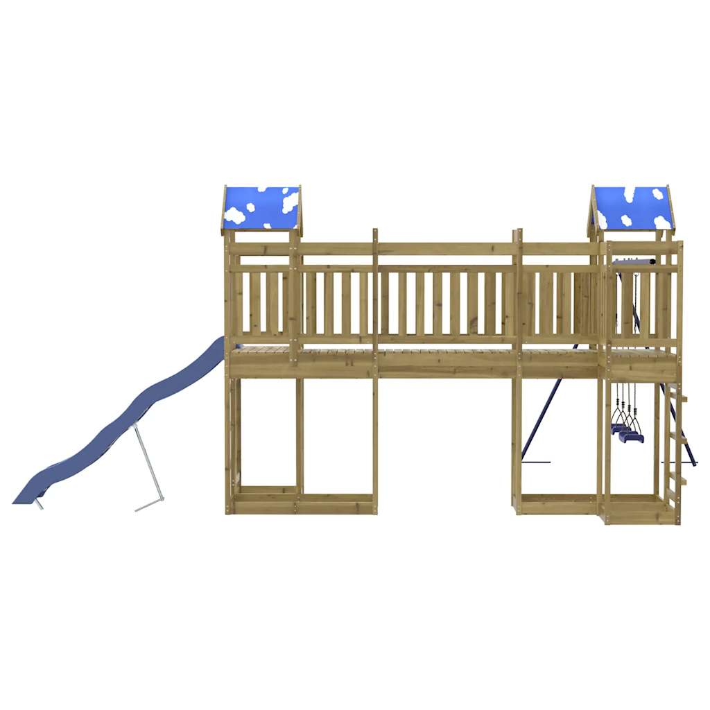 - Multiaktivitetssentre: Klatrestativet i tre har en 118 cm høy plattform og utmerker seg med sin bølgesklie, en dobbel huske, samt sandkasser. Dine små kan også invitere vennene sine til å bli med på moroa.