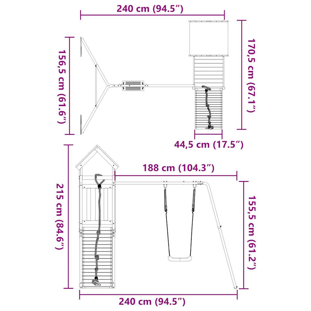- Gjennomtenkt design: Trerekkverkene er utformet for å sikre sikkerheten til barn under lek. Taket gir også skygge for barna dine på varme sommerdager.