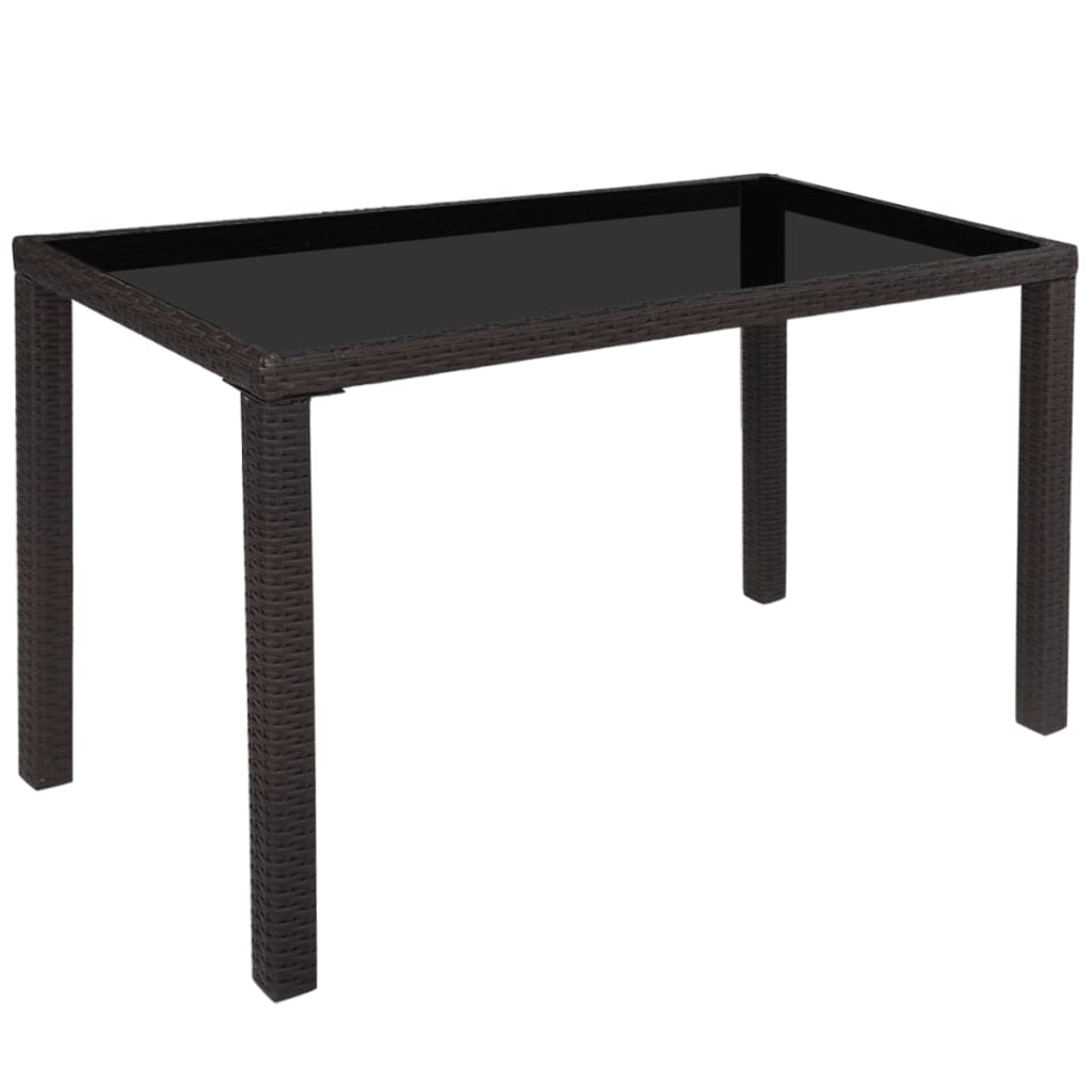 Dette spisebordsettet i rotting, med et elegant design, vil være et godt valg for utendørs spising eller for å slappe av i hagen. De pulverlakkerte stålrammene gjør bordet og stolene sterke og robuste, og takket være deres lette konstruksjoner er alle enheter enkle å flytte på. Værbestandig og vanntett PE- rotting gjør spisestuen lett å rengjøre. Glassplaten er også enkel å rengjøre med en fuktig klut.