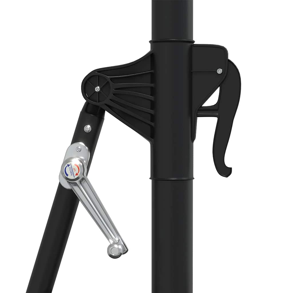 Parasollskjermen er laget av UV-beskyttende og anti-falmende polyester, som gjør den lett å rengjøre, og gir deg optimal beskyttelse mot solen. Den eksklusive utformingen av denne parasollen gir deg muligheten til å vippe parasollen for å blokkere solen når den går ned mot horisonten. Den sterke metallstangen, sammen med de 8 holdbare spilene, gjør parasollen veldig stabil og holdbar. Hageparasollen kan lett åpnes og lukkes takket være sveivemekanismen. Den er enkel å montere. Leveransen inkluderer også monteringsutstyr.